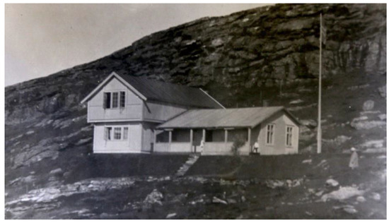 The original Kringsjå (Norwegian for “Look around”) mountain cabin was built in 1909, but unfortunately lost in fire in 1923 [52]. At that time, it was located in a well-maintained heathland; see Figure 2. The hut was located a 15-min hike from the Steinsfjellet summit.
