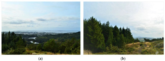 In Norway, spruce, Scots pine, yew, and juniper are the native conifers [63]. The most common non-native conifer introduced in NW Europe are the Douglas-fir (Pseudotsuga menziesii L.) and the Sitka spruce [64], originating from the Pacific North West. In addition to timber production, the tree species contribute to ecosystem services such as carbon sequestration, providing shelter, soil stabilisation, habitats, and recreational activities. In the Haugesund area, Sitka spruce was introduced in the 1950s, to rebuild the country after World War II. Due to limited local expertise regarding three plantations, the Sitka forests were left unmanaged and the trees are currently generally unfit as building material. The strong winds are challenging for the tree growth and the elastic quality of the timber, and the thin soil composition in the area cripples quality wood. Sitka does not need much sunlight to thrive and is highly competitive [20]. At 5–20 years old, Sitka produces high quantity of seeds. Along the west coast of Norway, it spreads on average 4.4 m/year [22]. Currently, three per cent of the forest on the Norwegian coast is covered by Sitka [22]. The potential for further invasive Sitka spread in heathlands has become acknowledged in the Norwegian scientific community [63,64]. Because of Sitka’s detrimental effect on the Norwegian biodiversity, it was blacklisted in 2012.