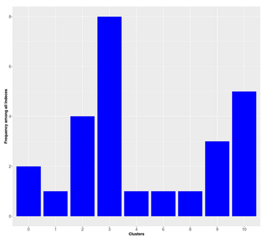 - Charrad, M.; Ghazzali, N.; Boiteau, V.; Niknafs, A. Nbclust: An R package for determining the relevant number of clusters in a data set. J. Stat. Softw. 2014, 61, 1–36. [Google Scholar] [CrossRef]