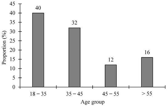 The producers of the new cocoa front in Western Ivory Coast were relatively young, 40% are <35 years old and 32% are between 36 and 45 years old (Figure 7). Producers over 45 years of age were the least represented with cumulative proportions of 28%.