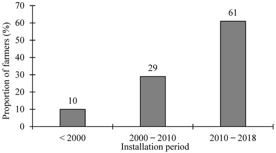 Cocoa producers of the new epicentre settled during three (3) major periods, namely: before 2000, 2000 to 2010 and 2010 to 2018. Analysing the statistics, about 61% of producers were settled between 2010 and 2018, 29% were settled between while 10% were settled before 2000 (Figure 11).
