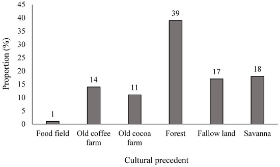Analysis of the settlement periods of migrant cocoa farmers in western Ivory Coast indicates that cocoa farming is recent in the study area. Specifically, cocoa farming has been booming in western Ivory Coast since the 2000s, with a large number of farmers settling at the beginning of the last decade. This observation is confirmed by the preponderance of cocoa farmers under 15 years of age in the department. Historically, infiltration into protected areas in Ivory Coast has been mainly carried out by populations not originating from the areas concerned. For example, the findings of [37,41] in the southern part of the Haut-Sassandra Classified Forest and in the Mont Péko National Park by [42] revealed that these protected areas were infiltrated mainly by people of Burkinabe origin. The same is true of most of the protected areas in the South-West of the country.