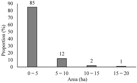 Cocoa plantations occupy less than 5 ha. Only 15% of producers have a plantation larger than 5 ha (Figure 14).