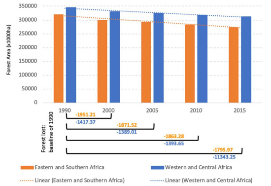 Forest area lost in Sub-Saharan Africa (SSA) [54]