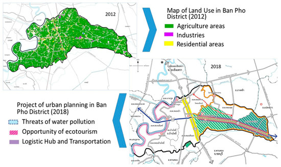 Map of land use in Ban Pho district in 2012 and 2018. Source: Department of Public works and Towns and Country Planning.