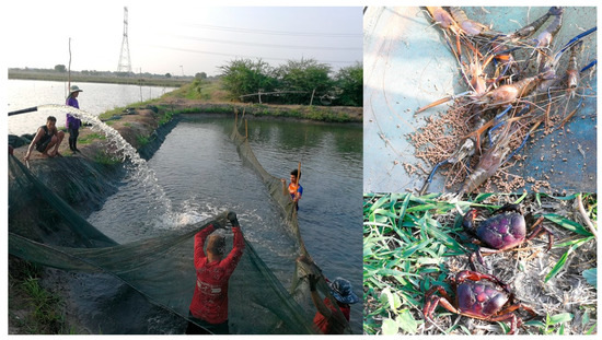 The local people at Nong Teen Nok are collecting prawns for sales and some crabs for personal use in the pond. Source: first author.