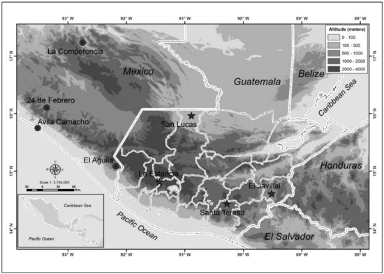 Close to 10% of Guatemala’s population lives abroad, mainly in the United States, and remittances comprise about 10% of Guatemala’s Gross Domestic Product (GDP) [11]. Data from Chiapas show that about 3% of the population migrated to the United States in 2007 and remittances composed 6% of the state’s GDP that year [12] (This is the most recent year for which we have census data on migration and remittances.) Thus, both migrants and their remittances have the potential to impart significant change on the local economy, which could lead to major land use changes in the sending region [5,6].
