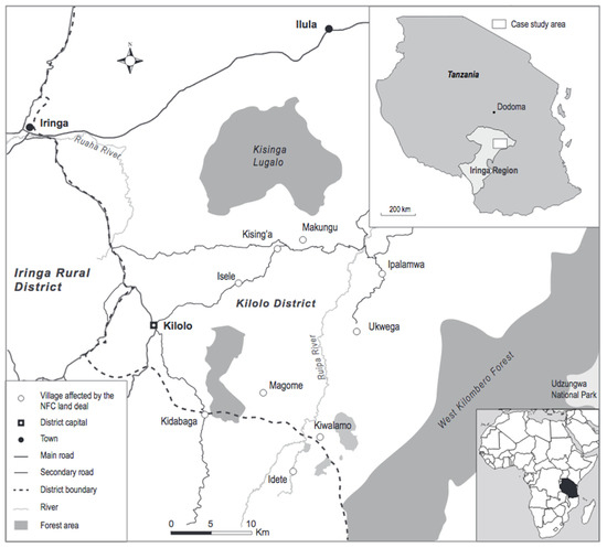 Much has been written on the impacts of large-scale land acquisitions (LSLA) in Tanzania [1,2] and Africa in general [3,4]. However, the impact on the commons, especially the commons to which women mainly have access, and issues of resilience1[5]. have rarely been addressed and, when they have, not from a long-term social anthropological perspective [6]. Scant literature in academia and mainstream literature focuses on identifying the scope and scale for action in already historically transformed gender relationships that are now, in addition, being challenged under the context of large-scale land acquisitions. Doss et al. [6] for example, point at a gap in the literature on LSLAs regarding the impacts on local livelihoods and gendered land tenure systems, as well as how women react to and/or cope with changes due to LSLAs. The literature on LSLA in Tanzania also misses out in addressing especially the disaggregated gendered impacts on the household-level (intra-household level) and the larger clan level (inter-household level) from a broader new institutionalist perspective. In this paper, I discuss data from my research on large-scale land acquisitions of a forest plantation made by the British-based investor, the New Forests Company (NFC), in the two villages Makungu and Ukwega, in the Kilolo district of the Iringa region. The paper shows how large-scale land acquisitions consolidate commonly owned land (i.e., create common land enclosures) and impede access to this land and to land-related common pool resources (e.g., fruit trees, grasses), to which women previously had specific access and/or property rights, due to their own family clan affiliation and/or their husbands’ family clan.