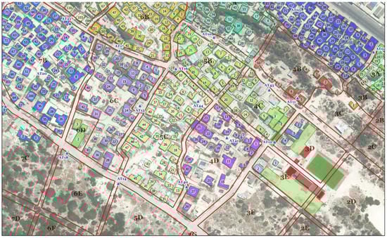 By October 2011, 90% of the households had been surveyed and the long process of surveying those that had been missed followed [7]. Residents were encouraged to verify the correctness of their data. By May 2012, 97% of the households had been surveyed. By late 2013, VPUU had assembled the information for the CoCT, as the landowner, to generate Certificates of Tenure. In February 2014, the mayor endorsed 6470 Certificates of Tenure, which were handed over to residents. VPUU established the CRO in shipping containers on site to house the records in 2015, some six years after VPUU had become involved in organisational development, leadership training and institutional development as part of the participatory planning process. By July 2016, the CoCT and CRO had distributed an estimated 85%–90% of the tenure certificates [19]. Re-blocking was managed using QGIS to map existing pathways and roadways. No shacks had to be moved (Int #2021). As shown in Figure 3, each block has a different colour code when viewed in the GIS.