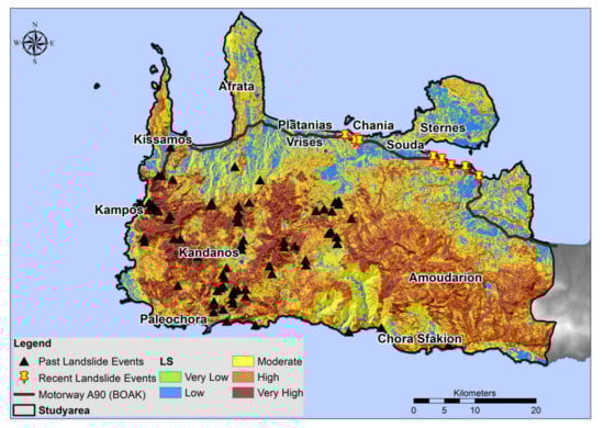 - Kouli, M.; Loupasakis, C.; Soupios, P.; Vallianatos, F. Landslide hazard zonation in high risk areas of Rethymno Prefecture, Crete Island, Greece. Nat. Hazards 2010, 52, 599–621. [Google Scholar] [CrossRef]