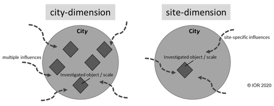 Schematic illustration of the assignment of studies to city- or site-dimension.