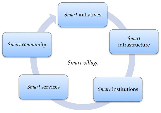 Main elements of smart village ‘space’. Source: own work based on [73] (p. 441).