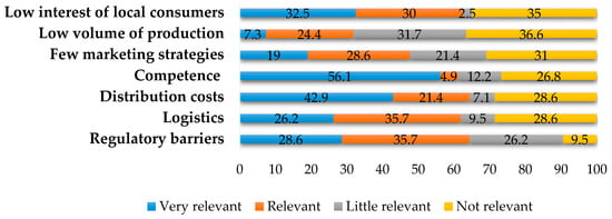 The methodological approach is based on the distributive method and uses the production and analysis of survey data as a technique. The survey technique has been chosen as it allows quantitative data to be systematically obtained with a questionnaire, as well as permitting the statistical treatment of this data, which favors compared analysis with other similar studies [,]. This study was carried out in two specific metropolitan areas (Granada and Málaga) and two subsamples are identified in each area: one, producers in peri-urban organic agriculture; and two, small retail traders as points of sale.
