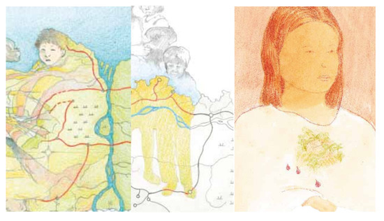 In the images, land is turned into bodies. It merges with their heads, hearts, and chests, thus hiding the social relations that allow this value to be delivered, for this value to be linked to this type of accumulation and the inequalities that this belief hides. The legal discourse constructs these connections, linking the land with dignity and autonomy. From this liberal vision within which land produces development, as well as individual dignity, many already pivot around the subject of land as a human right [29]. For technocracy, as for early academic diagnoses, land encompasses a dignifying value with civilizing effects: it teaches us to be independent and economically valuable, it makes us responsible, and it makes us better citizens. Land turns us into “agents.”