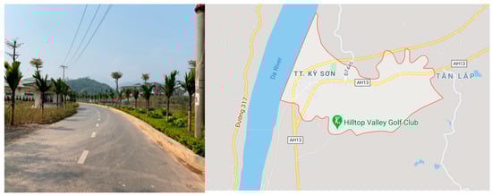 The Geleximco project, an investment by Hanoi Geleximco Export and Import Stock Company, was approved by the People’s Committee of Hoa Binh province in 2014. The total area of the project is 393 ha, and it is located in the Ky Son district and Hoa Binh city, Hoa Binh province (see Figure 11); 263.9 ha of this project are for a golf course, 59.99 ha are for housing and the development of an ecocity, and 68.99 ha are forest plantation.