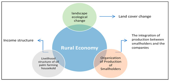 Household livelihood systems of smallholders tend to depend more on a single source of income. Household income diversity is decreasing and becoming subtler. Livelihood uniformity is expected to reduce livelihood resilience and increase vulnerability [21,29,36]. The impacts of oil palm expansion may be said to create issues relating to landscape change, organization of production, and livelihood, as outlined in Figure 1.