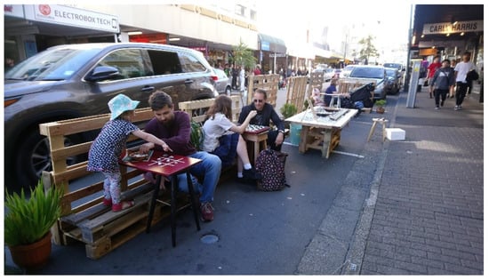 - PARK[ing] Day Highlights Importance of Urban Public Spaces|Newshub. Available online: https://www.newshub.co.nz/home/new-zealand/2019/09/park-ing-day-highlights-importance-of-urban-public-spaces.html (accessed on 5 May 2020).