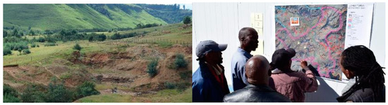 Left: The Tsitsa Project located in a highly erodible, degraded landscape in which local people are reliant on natural resources for their livelihoods. Right: Participatory mapping of priority areas for restoration to inform integrated landscape planning has been a key boundary-crossing activity facilitated by the Tsitsa Project.