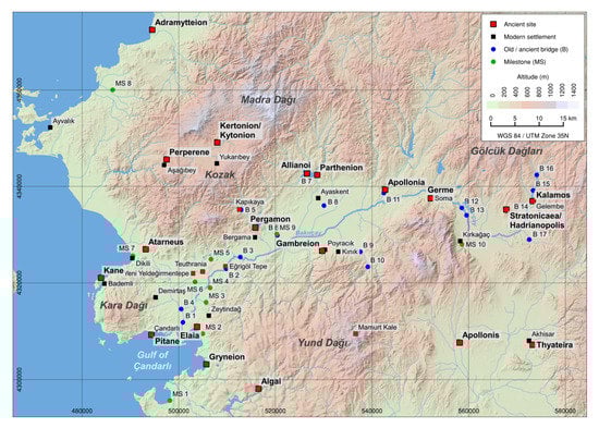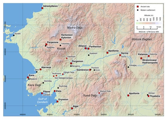 - Zimmermann, M.; Matthaei, A.; Ateş, G. Die Chora von Pergamon: Forschungen im Kaikostal und in der antiken Stadt Atarneus. In Urbane Strukturen und bürgerliche Identität im Hellenismus; Matthaei, A., Zimmermann, M., Eds.; Springer: Berlin/Heidelberg, Germany, 2015; pp. 193–236. ISBN 978-3-938032-55-8. [Google Scholar]