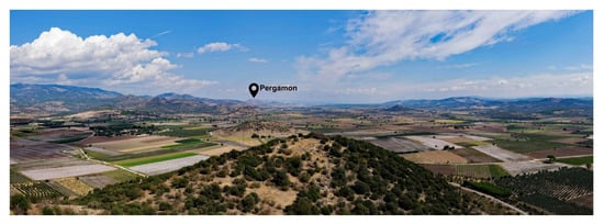 - Sommerey, K.M. Die Chora von Pergamon: Studien zu Grenzen, Siedlungsstruktur und Wirtschaft. In Istanbuler Mitteilungen; Pirson, F., Bachmann, M., Eds.; Ernst Wasmuth: Tübingen, Germany, 2008; pp. 135–170. [Google Scholar]