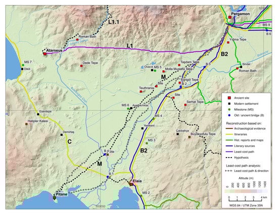 This study aims to reconstruct the ancient route network in the region of Pergamon by combining historical and archeological sources with modern computer-aided least-cost path analyses, while considering the above-mentioned changes in the landscape. Subsequently, conclusions may be drawn about the characteristics and functional diversity of the routes.