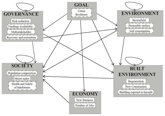 After the goal of the evaluation is defined (Figure 8), the subsequent step foresees the identification of the indicators related to urban resilience concept to structure the SDM.