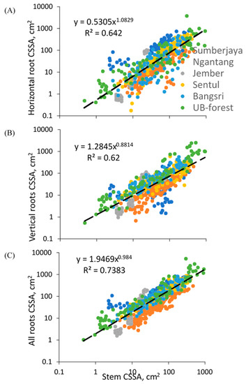 | Stem CSSA, cm2 | Vertical (IRA) | Horizontal (IRB) | Root/Shoot CSSA | Vertical/Horizontal Ratio |