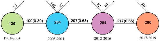 3.1. Results and Analysis of the Theme Evolution from 1903 to 2004
