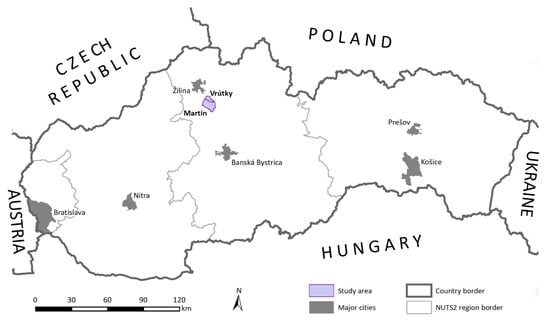The study area is located in the Martin county, within the Žilina administrative region, which occupies a substantial part of northern Slovakia (