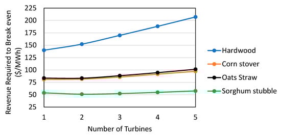 Volume 2 of the US Department of Energy’s 2016 Billion-Ton Report, titled “Environmental Sustainability Effects of Select Scenarios from Volume 1” [], explores environmental sustainability indicators of the resources used in this analysis. These indicators include quantitative changes in soil organic carbon, water quality effects (nitrate, total phosphorus, and sediment concentrations), water use and yield, greenhouse gas emissions, biodiversity effects, and air quality effects (carbon monoxide, particulate matter, volatile organic carbons, particulate matter, and sulfur and nitrogen oxides). The feedstocks in this study are limited to those that can have neutral or beneficial environmental and socioeconomic effects if applied with strategies such as best management practices, and allocation on the landscape where perennial energy crops can reduce erosion and improve water quality relative to other land uses as described by the US Department of Energy (USDOE) []. If done correctly [], the biomass resources used in this analysis have the potential to contribute to United Nations Sustainable Development Goals such as life on land, life below water, affordable and clean energy, decent work and economic growth, sustainable cities and communities, no poverty, and climate action without compromising the other Sustainable Development Goals []. We cannot say with certainty that the biomass resources used in this analysis will be produced with neutral or positive environmental effects, but results from USDOE [] suggest that they can be. Other resources not included in this analysis may offer other advantages. For example, forest thinnings in the wildland–urban interface can reduce fire risk [,], the use of hurricane (e.g., []) and storm [] debris can reduce wastes, use of invasive exotic species could aid in their control, and sourcing biomass from agroforestry systems can provide multiple agronomic benefits []. Resources such as these could be explored for initial applications. Long-term monitoring and evaluation of environmental [] and socioeconomic [] effects is recommended to ensure that potential negative effects are avoided and potential positive effects are enhanced.