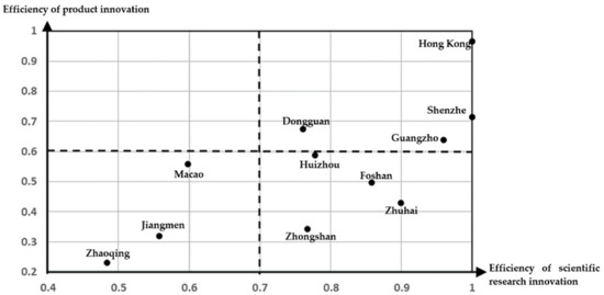 “Scientific research–product” innovation efficiency matrix.