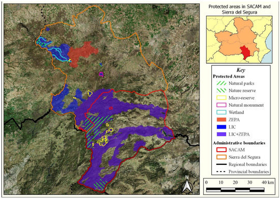 Among the many areas of geological and biogeographic interest in the district, there are two important natural parks: the Calar del Mundo in the Sierra del Segura and the Lagunas de Ruidera. These two natural areas have undergone little transformation. Owing to the beauty of their landscapes and the unique characteristics of their flora, fauna and topography, they are of notable ecological, aesthetic, educational and scientific value that deserves to be preserved. The former is a notable karst complex that is home to the source of the River Mundo, a tributary of the Segura River, while the Lagunas de Ruidera are included in the list of wetlands declared of international importance by the Ramsar Convention. In this case, the beauty of the landscape, together with the opportunity for water sports, has triggered the development of tourism. There also exist other protected areas, nature reserves or micro-reserves, scattered across the territory, which are representative of the significant interest of the physical and biogeographic components of its landscapes (Figure 5).