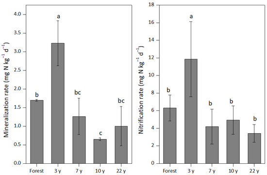The gross mineralization and nitrification rates, expressed as mg N kg−1 d−1, were calculated via the equation of Kirkham and Bartholomew (1954) [35], as follows: