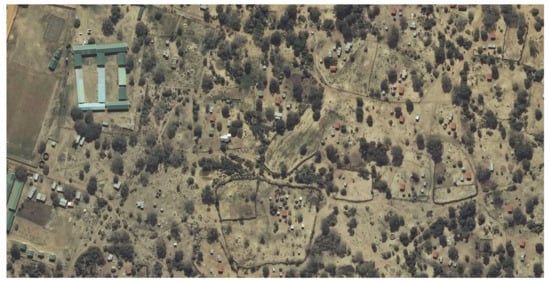 With the quality of the available rectified imagery from NGI [], many of the land parcels can be delineated straight from the imagery. For example, settlements such as those of Buyelani (Figure 1), Tshiungani (Figure 2), Luphisi (Figure 8) and Molomowapitsana (Figure 11) would require only cursory ground truthing (community participation), as the boundaries of the land parcels are sufficiently recognisable for recordation purposes from the imagery. On the other hand, settlements such as those of Siphondweni (Figure 9) and Mahana (Figure 10) may require more extensive verification on the ground, because hedges and edges of cultivation may not define the full extent of the occupants’ rights. Experience of the author has shown that the members of the community will readily provide much of the additional information whenever trust is established.