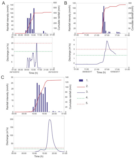 Subsequently, a closer pluviometrical examination has been performed for the most recent and damaging flood events: (i) 4 October 2010 in Sestri Ponente [45], (ii) 18 November 2013 in Olbia [46] and (iii) 9 September 2017 in Livorno [47,48].