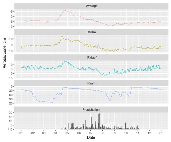 - Lafleur, P.M.; Moore, T.R.; Roulet, N.T.; Frolking, S. Ecosystem respiration in a cool temperate bog depends on peat temperature but not water table. Ecosystems 2005, 8, 619–629. [Google Scholar] [CrossRef]