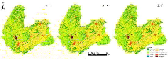 Land-use type distribution from 2010 to 2017.