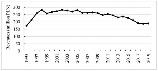 Total annual revenues from market fee on permanent and seasonal marketplaces in Poland in 1995–2019. Source: own elaboration based on data from the Local Data Bank.