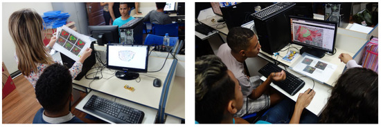 The experiment was conducted in a computer laboratory of the local public school. Although the computers were rather basic, their hardware was enough to fulfill the goals of the workshop, given that it only takes an Internet connection to access the WebMap, the 3D model and the GeodesignHub platform. The workshop was attended by nine participants, between 14 and 16 years old, all residents of the community. As proposed by the City’s Municipal team, they also had access to a complete collection of printed maps.