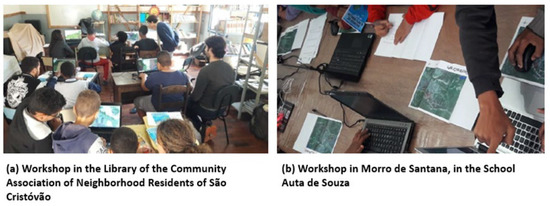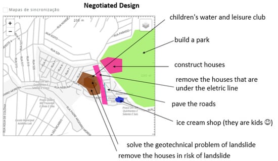 This study advances the national and international existing literature in two main aspects, the use of a platform adapted to the local reality and the work with different social actors, recognizing that at different times they play different roles in planning. The Brazilian platform, GisColab, was created after many tests and experiences in Geodesign workshops using international platforms and frameworks that were proposed by other researchers, building the necessary adjustments to adapt to the reality of developing countries [47]. It is an innovative platform once it integrates all the technology needed for the workshop in one place, having full interoperability. It dialogs with all kinds off web-based links and languages that are already familiar to actors, attracting future users. From the experience of Conjunto Confisco presented in this work, it was possible to understand how to conduct remotely web-based workshop using Giscolab, but it also made us realize the importance of some face-to-face meetings, considering there are still many digitally excluded individuals in the context of precarious settlements in developing countries, which is the main challenge to be overcome. Regarding the progress related to planning with different actors in society, this study recognizes the importance of working with children, young people, academics, and professionals, as well as the City’s Municipal team, recognizing that they play different roles in planning.