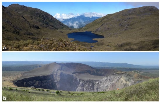 (a) Glacial landscapes in Chirripó National Park in Costa Rica. (b) Masaya volcano in Nicaragua. Photos: Adolfo Quesada-Román.