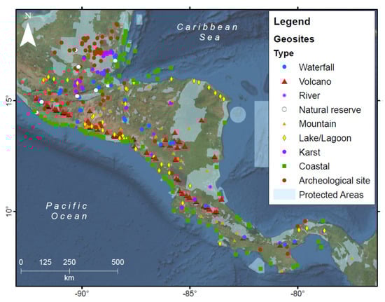 This study identified the protected areas and geosites that can protect and promote the geoheritage of the region [,]. Subsequently, an extensive literature review will be conducted on the environmental legislation of Central American countries in their early stages as well as on the international agreements in which the countries have participated [,,]. This kind of methodology provides a historical reconstruction of the environmental conservation in the countries to understand how they have promoted the conservation of the geoheritage of the geoheritage in each country [,]. Consequently, we show the timeline of its environmental policies, its national conservation systems, and the tourism policies and actions of each nation []. Therefore, this initiative is based on the generation of baselines, indicators from the information of the countries in terms of their geoheritage and geodiversity that seek to articulate a strategy that includes the tourism sector, local and central governments, and academia from this proposal.