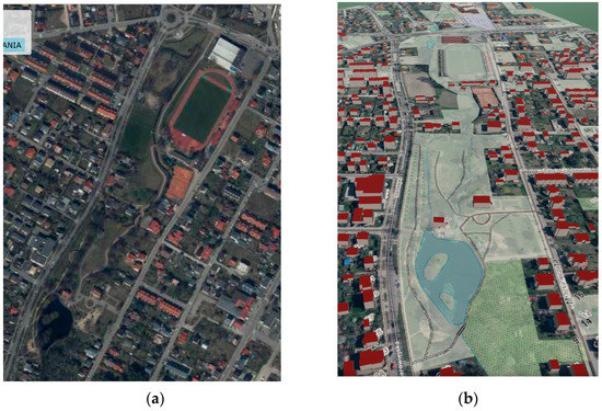Park Starowieski on orthophotomaps, 2021 (a) aerial photo, (b) 3D map source: [12].
