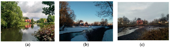 The village of Rumia dates back to ancient times. In 1950 and 1960 in the case study area—Starowiejska and Mickiewicza streets, on both sides of the Zagórska Struga River (Figure 1), over 300 graves were discovered from the ancient time of early Roman influence on the Pomeranian culture [14]. Old stoves for iron ore smelting were found there [15]. The oldest documents mentioning the industrial water facilities in the old village of Rumia date back to the second half of the 16th century. The natural water fault creating a small waterfall was used to move the water wheel of the forge. It is believed that the first water smithy belonged to Cistercian Monks from Oliwa.