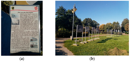 In front of the manor house, next to the main entrance, is a permanent table with a short description of the park’s history and a few historical images. The lawn in front of the manor serves temporary exhibitions dedicated to local history (Figure 11).