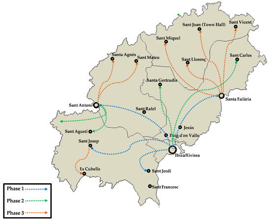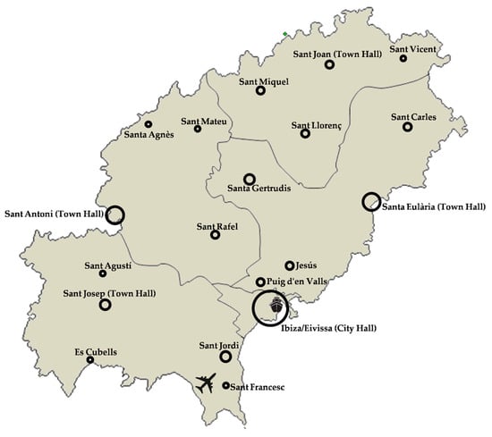 Political map of the island of Ibiza: municipalities and towns (own elaboration).