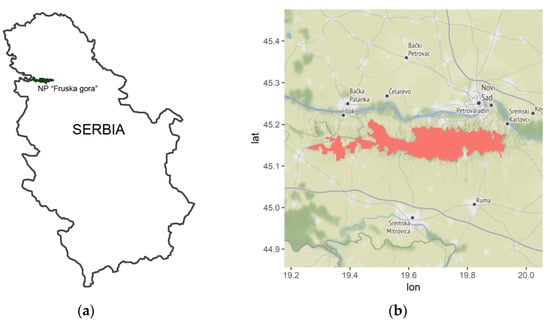 (a) National park “Fruska Gora“; (b) Borders of the National park “Fruska Gora“.