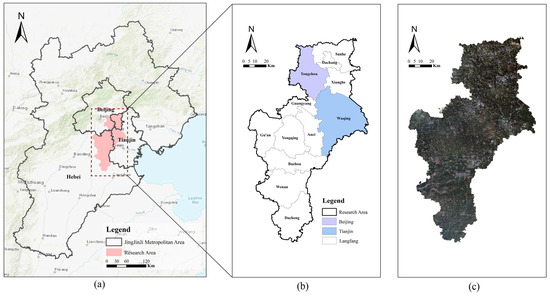 (a) Beijing-Tianjin-Hebei Metropolitan Region, (b) administrative map of TWL region, and (c) remote sensing image of TWL region (Source: authors based on United States Geological Survey).