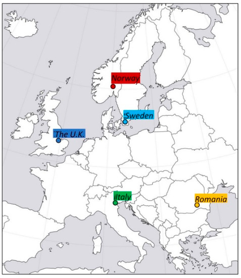 All SICSs had a common objective—to counteract soil compaction. They were located in five countries along the north-to-south and east-to-west gradients from Norway to Romania (Figure 1 and Supplementary Materials, Table S1).