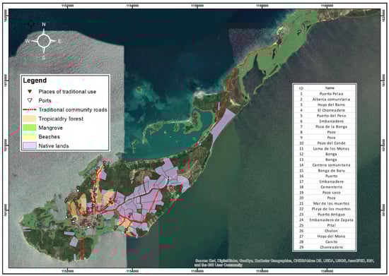 Community use areas on Barú Island. Sources: Spatial analysis of Google Earth images (2021) processed in ArcGIS.